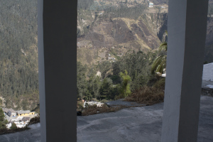 la galería esta instalada en dos galpones (dos salas) de 5m. de ancho por 5 metros de largo y 2,50m de alto, uno encima de otro, consta con una terraza amplia la cual tiene vista directa al hermoso paisaje que ofrece el borde de la ciudad de Quito.