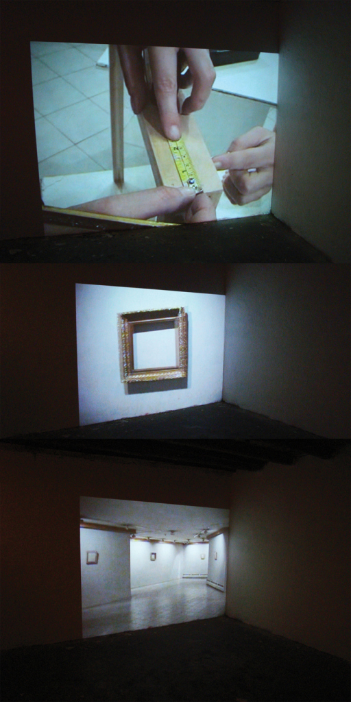 El vídeo retrata el periodo de tiempo de montaje en un centro de exposiciones que con sus paredes blancas, iluminación dirigida, y la disposición del lugar; confunde al espectador espacial y temporalmente entre la situación expuesta en el vídeo, y su relación con el espacio desde donde se la esta observando.